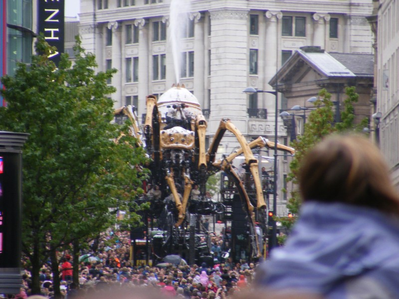 Much to the amazement, and delight, of the crowd the spider squirts something.